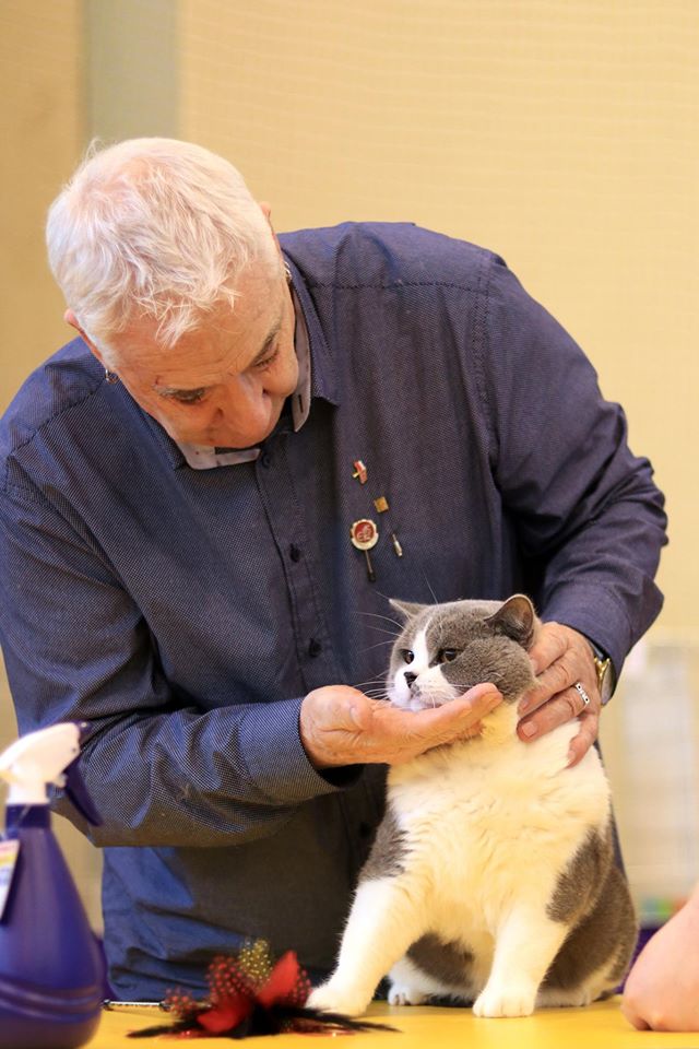 Na wystawie zaprezentowaliśmy dwa nasze młode kocury CH Vom Wernerwald Svarowskis Victor (13 miesięcy) i Gregor von Walder (15 miesięcy). W sobotę pierwszy do oceny stanął Gregor, oceniany przez sędzię z Szwajcarii Panią Thea Friskovec pokonał rywala i otrzymał najwyższą możliwą ocenę EX1 oraz ostatni brakujący certyfikat CAC i tym samym od teraz nosi tytuł CHAMPION :). Sędzia przyznała Gregorowi również nominację do panelu BEST IN SHOW jako najlepszemu dorosłemu kocurowi z ras krótkowłosych jakie miała okazję oceniać w tym dniu. Victor otrzymał od sędzi z Rosji Natalii Sidorovej ocenę EX1, pierwszy certyfikat do tytułu International Champion (CACIB) oraz również nominację do BEST IN SHOW. Niedziela była odbiciem lustrzanym soboty: Gregora oceniała P. Sidorova a Victora P. Friskovec. Victor ukończył rywalizację z wynikiem EX1, CACIB a Gregor prócz EX1, CACIB, NOM BIS został wyróżniony nagrodą BIV (Best In Variety) dla najlepszego kota brytyjskiego w kolorze niebieskim (zarówno wśród kotek jak i kocurów). Oba kocurki bardzo dzielnie zniosły trudy wystawy, jesteśmy z nich bardzo dumni.
