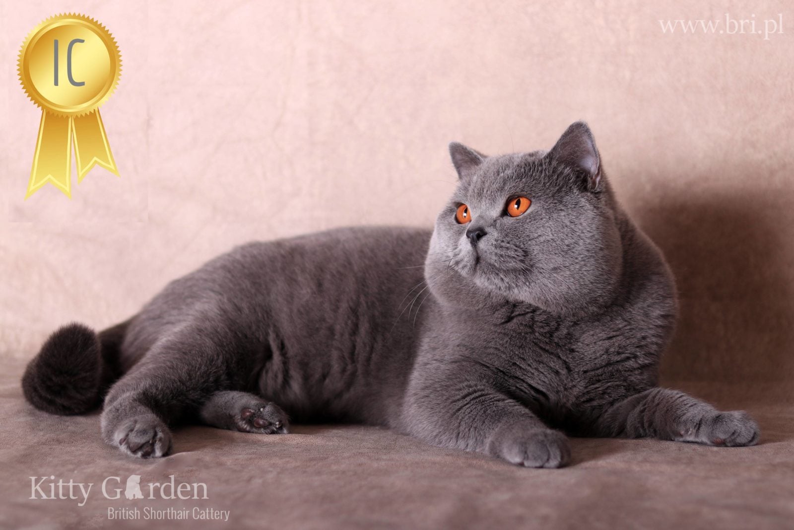 Gregor został przez nas zakupiony w bardzo dobrej niemieckiej hodowli. Jest on synem pięknego, utytułowanego kocura Dorian Grey from Town House (tytuł: Europa Champion). W żyłach Gregora płynie krew wielu utytułowanych kotów w tym również z tytułami World Champion, ponadto reprezentuje on nową linię w Polsce. Sam Gregor jest kotem równo rosnącym, w bardzo dobrym, kompaktowym typie, zwartym, na mocnych krótkich łapach. Posiada bardzo gęste, krótkie „crispy” futro, wspaniały profil i miłą ekspresję pyszczka, malutkie szeroko rozstawione uszy i wyjątkowo bardzo intensywny kolor oczu. Z charakteru jest kociakiem spokojnym, łagodnym, lubiącym dzieci. Jest on naszą wielką nadzieją hodowlaną i spełnieniem marzenia o wysokiej jakości niebieskim kocurku, jesteśmy ogromnie szczęśliwi, że zamieszkał razem z nami.