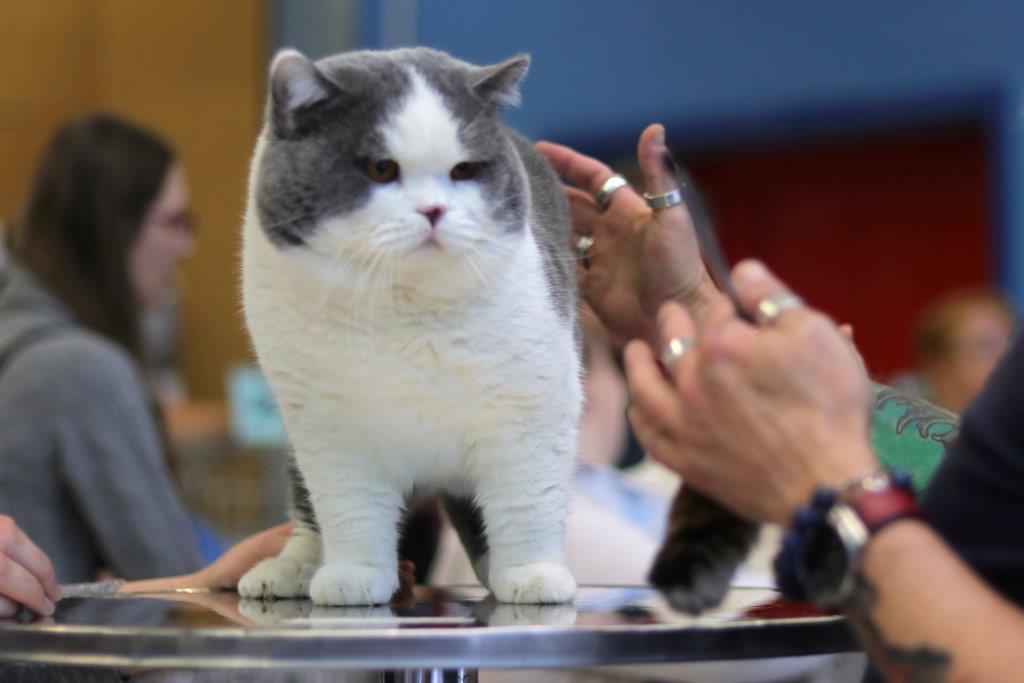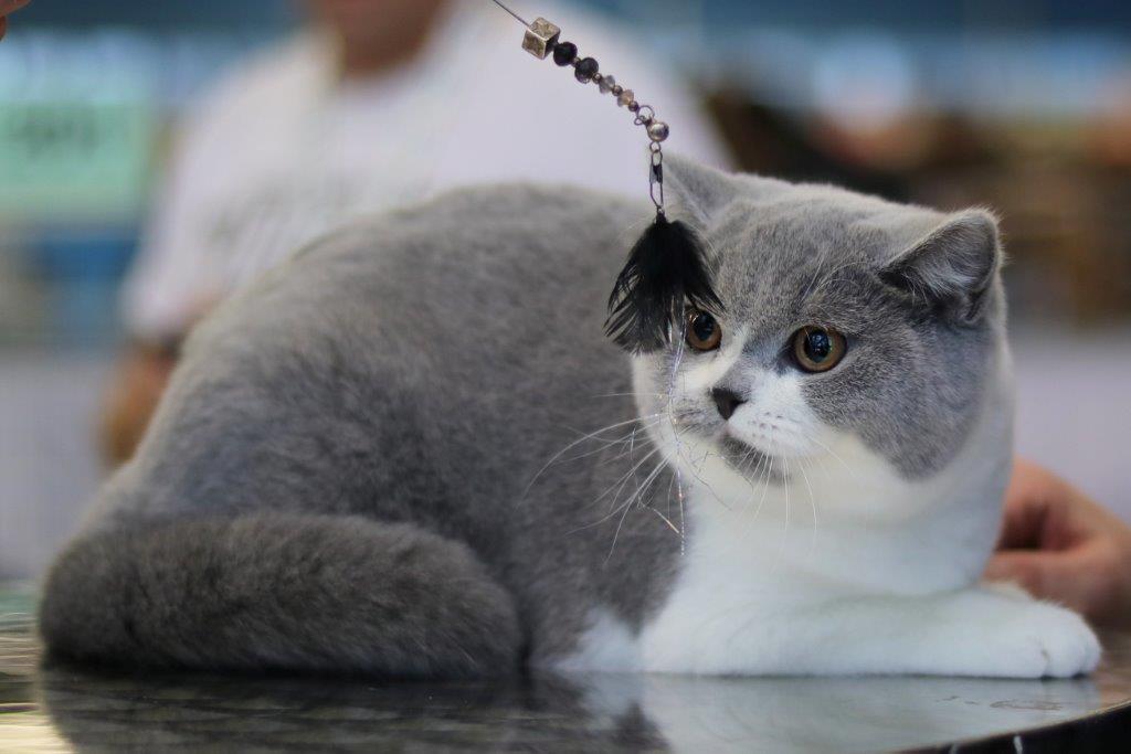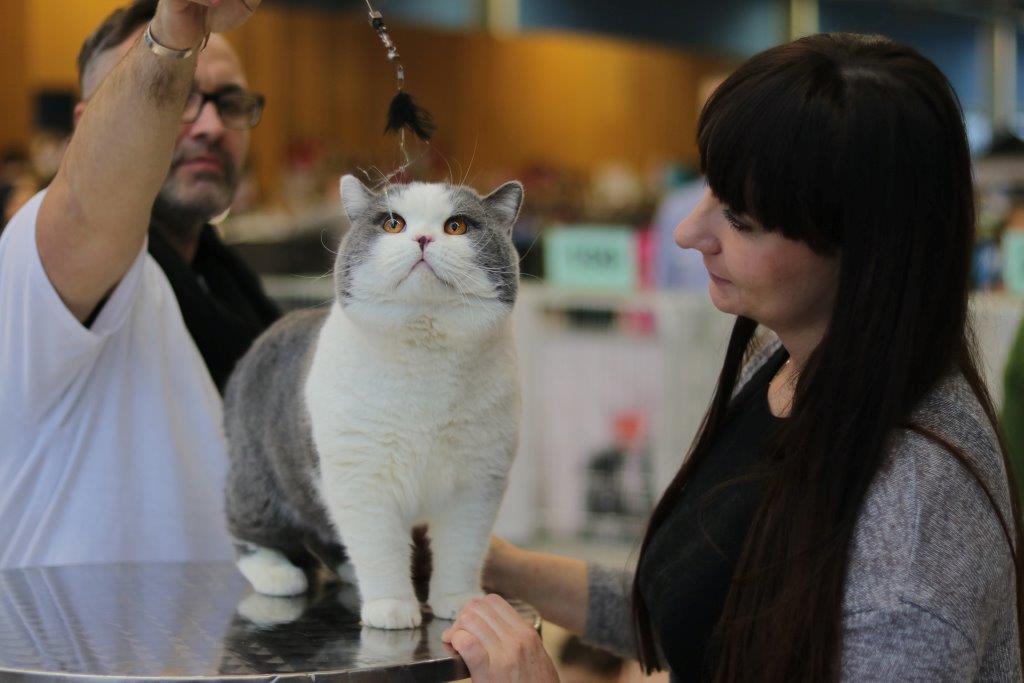W sobotę oceny naszych niebieskich bikolorów dokonał sędzia z Hiszpanii Gerardo Fraga Guzman, na którym nasi wielcy chłopcy zrobili niemałe wrażenie :), obaj otrzymali maksymalną ocenę EX1 oraz certyfikaty do kolejnych tytułów wystawowych: Cesar certyfikat CAGCIB do tytyłu Grand International Champion a Victor kolejny certyfikat CACS do najwyższego wystawowego tytułu SUPREME CHAMPION, sędzia Guzman ocenił również naszą słodką sześciomiesięczną So Love przyznając jej ocenę EX1. Po indywidualnej ocenie kotów przyszedł czas na przyznanie nagrody BIV (BEST IN VARIETY) czyli nagrody dla najpiękniejszego kota w danym kolorze, nagroda ta po powędrowała do Victora.