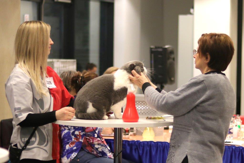 Weekend 23-24.02.2019′ upłynął nam w miłej atmosferze na Międzynarodowej Wystawie Kotów Rasowych w Warszawie, organizowanej na stadionie PGE Narodowy przez Elitarny Klub Kota Rasowego. W wydarzeniu tym wzięło udział prawie 350 kotów, w tym dwa nasze kocury w kolorze BSHa03 (niebieski bikolor): GIC Vom Wernerwald Svarowskis Victor oraz IC Alpha Cesar Kitty Garden*PL. W sobotę nasi chłopcy ocenieni zostali przez sędziego z Białorusi Vladimira Isakov, który Cesarowi przyznał najwyższą ocenę EX1 oraz kolejny certyfikat CAGCIB do tytułu Grand International Champion a Victorowi prócz EX1, certyfikatu CACS (do najwyższego tytułu wystawowego: Supreme Champion) również nagrodę BIV (Best in Variety), czyli dla najpiękniejszego kota w tym kolorze. Po krótkiej przerwie Victor trzymał również nagrodę NOM BIS,dla najpiękniejszego krótkowłosego kocura dorosłego wszystkich ras jakie sędzia miał okazję oceniać w tym dniu. W niedzielę nasze kocury oceniła sędzia z Włoch Argia Laura Burani Ferrari, przyznając Victorowi EX1, CACS oraz ponownie BIV a Cesarowi EX1 oraz ostatni (szósty) certyfikat CACGIB. Tym samym od teraz Cesar nosi tytuł GRAND INTERNATIONAL CHAMPION.