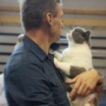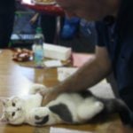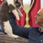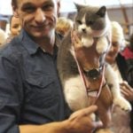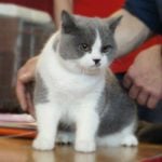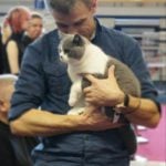 W sobotę Victor oceniany był przez sędziego z Francji, Pana Philippe De Guerny Venturę, którego chyba po prostu zafascynowały nasze koty (na zdjęciu z naszą Rose : ). Sędzia przyznał Victorowi ocenę doskonałą (EX1) i ocenił jako fantastycznego młodego kocurka z wielkim hodowlanym potencjałem, ponadto przyznał mu NOM BIS jako najlepszemu kocięciu, jakie miał okazję w tym dniu oceniać. Victor otrzymał to wyróżnienie pokonując zarówno niebieskie jak i kremowe brytyjczyki. Rose zdobyła identyczny wynik u sędzi z Rosji, Pani Olgi Sizovej tj. EX1 i NOM BIS 🙂 !!!