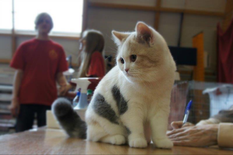 W niedzielę Victor oceniany przez polską sędzię, Panią Magdalenę Kurdę otrzymał EX1 a Rose u Pana Ventury powtórzyła sobotni sukces otrzymując EX1 i NOM BIS! A ile było przy tym zabawy!!! Rose zachowywała się jak pluszowy miś, tuliła się z oceniającym, bawiła jego długopisem, „tuliła” na jego rękach do snu 😀 na końcu…sędzia położył ją na plecach na stole i tak leżała 😀 rozśmieszyła nas wszystkich bardzo ta puchata kolorowa maskoteczka 🙂 Sędzia opisał ją jako kotkę o wyjątkowym wystawowym temperamencie, bardzo dobrych proporcjach ciała i koloru, pięknej ekspresji, dobrym futrze i kolorze oka.